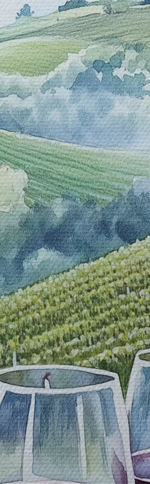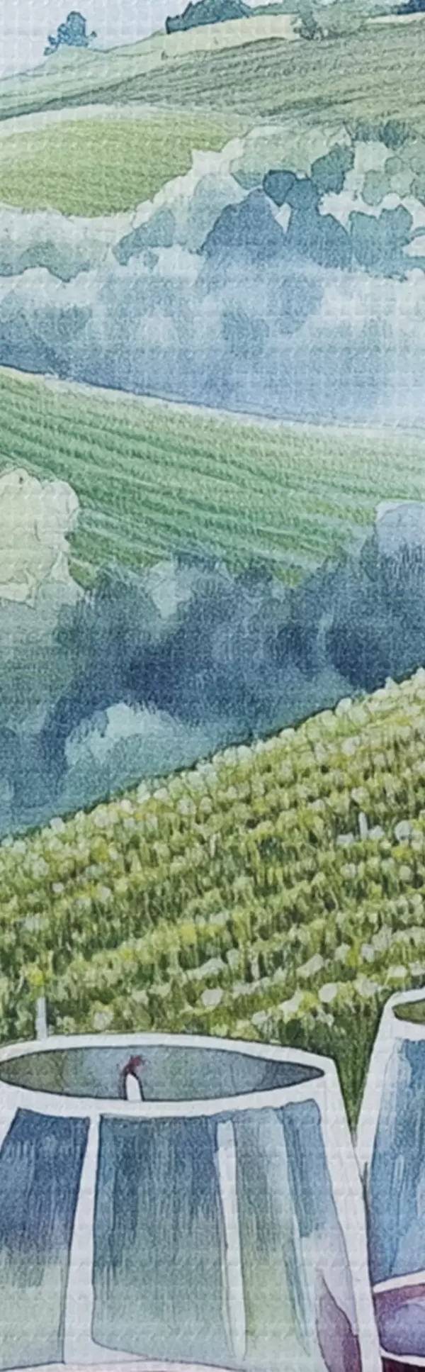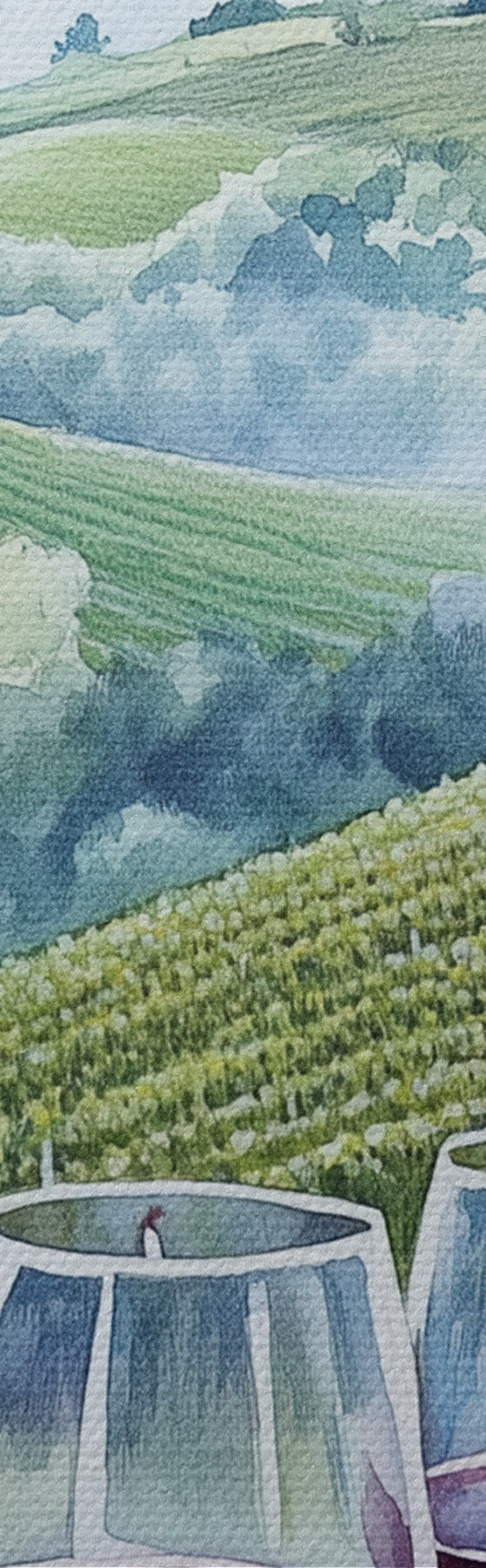Ronde schilderijen Toscane landschap, wijngaarden, wijnglazen, aquarel stijl Nr r42445