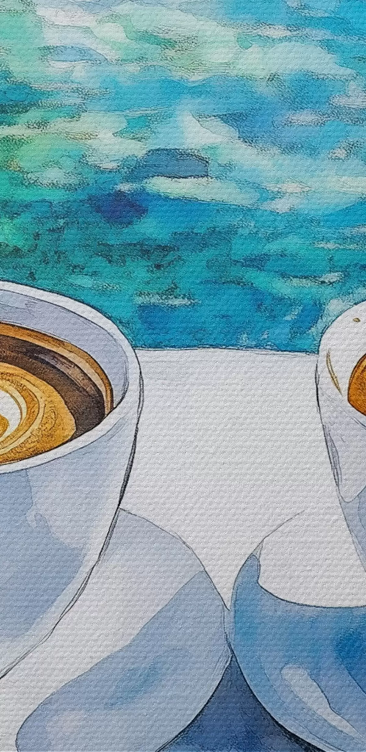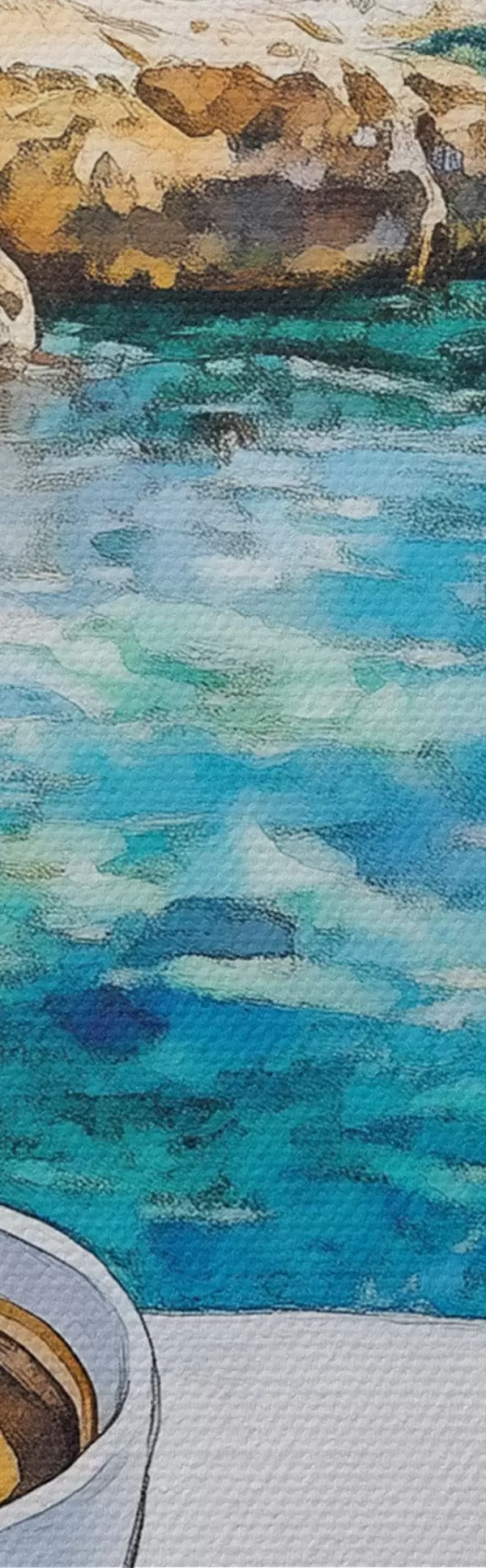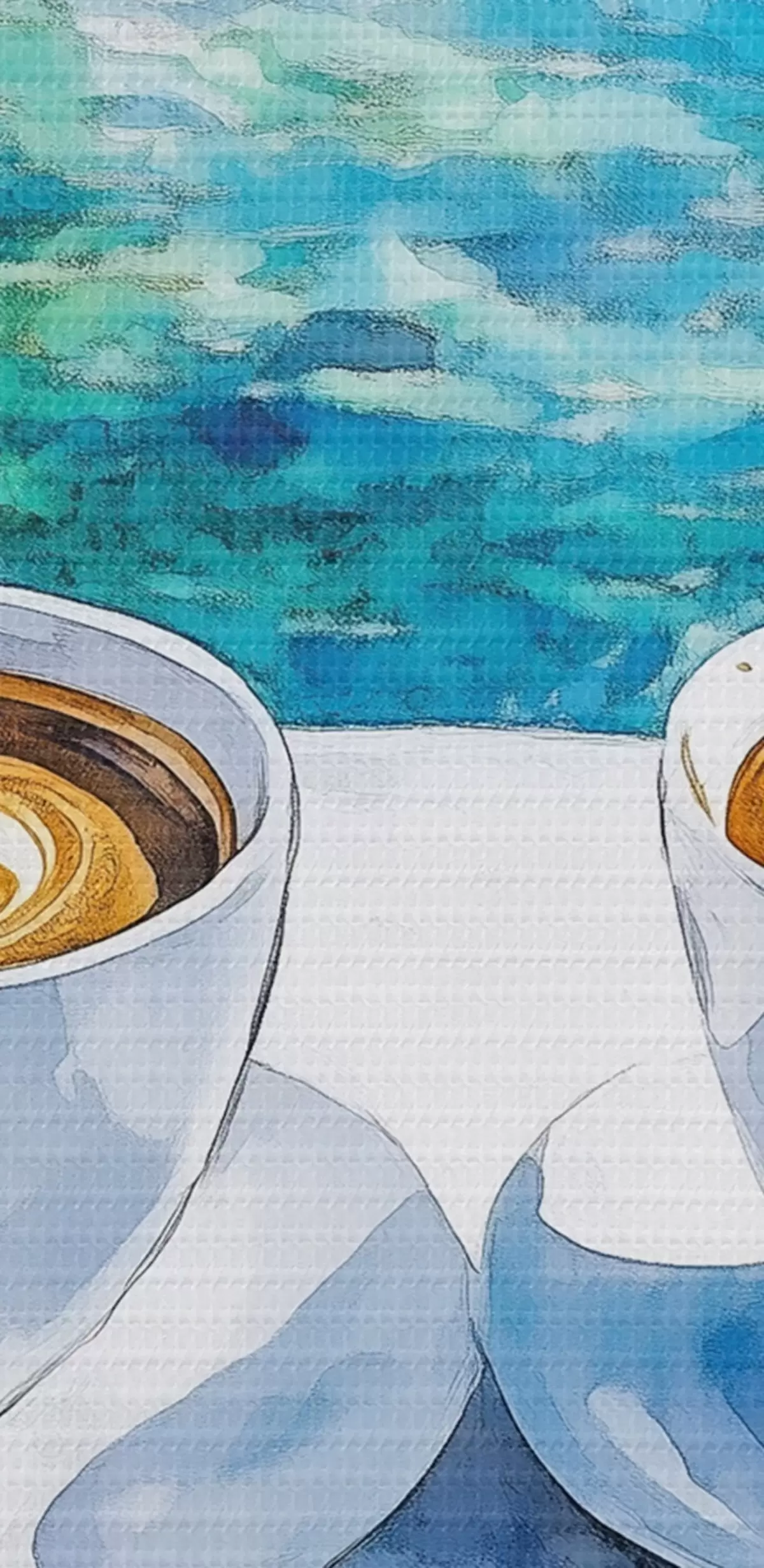 Ronde schilderijen Griekenland esthetiek, kopjes koffie, blauwe zee, oude stad, reizen Nr r42447