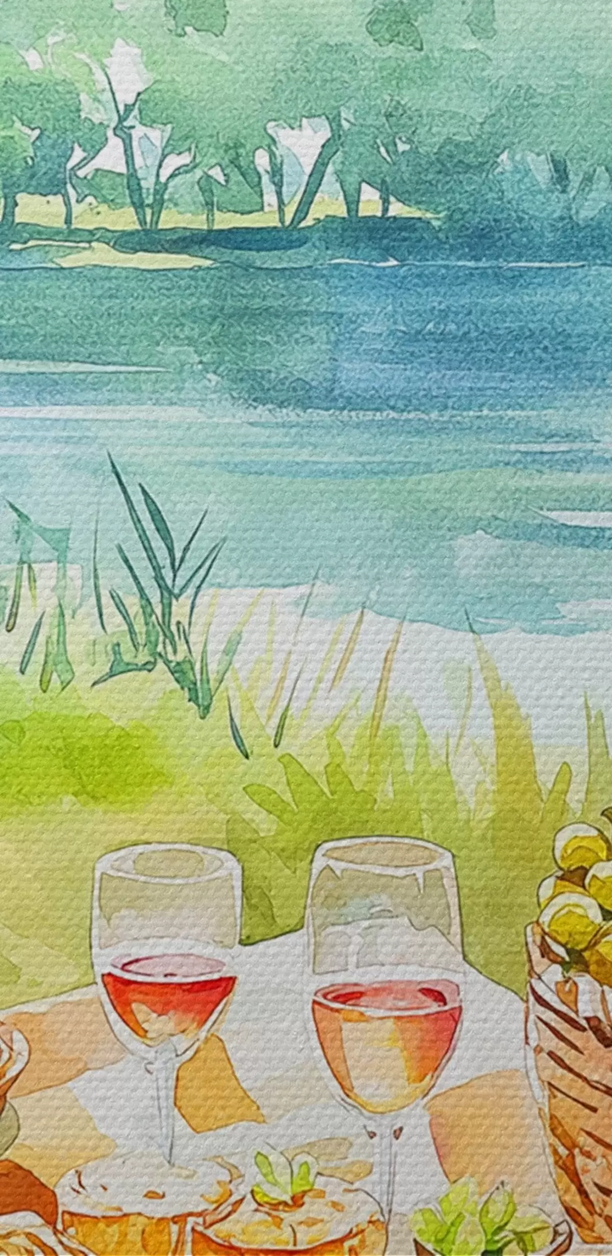 Ronde schilderijen Picknick esthetiek, zomer natuur, meer, romantisch, aquarel stijl Nr r42450