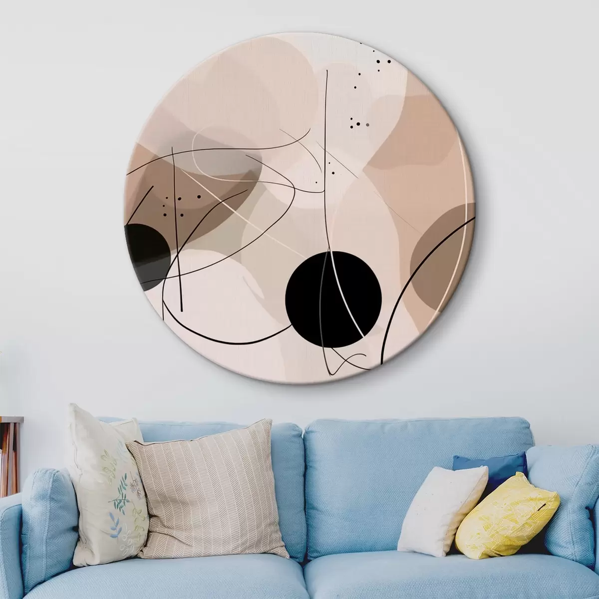 Ronde schilderijen Abstracte compositie met geometrische vormen en lijnen Nr r42475
