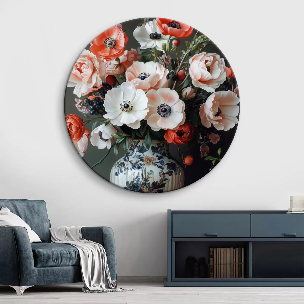 Ronde schilderijen Een boeket prachtige bloemen in een vaas Nr r42496