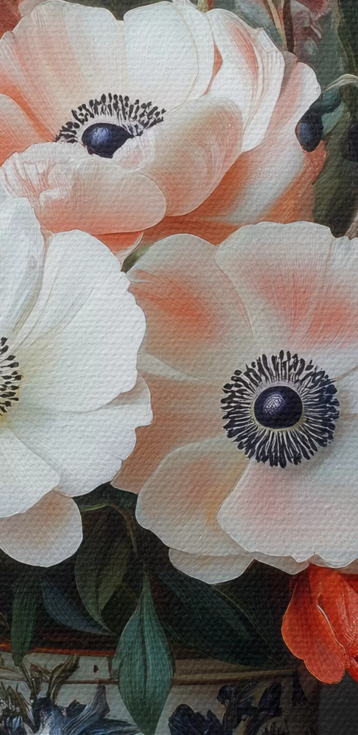 Er zijn drie soorten materiaal te bestellen: Economic Canvas - een dicht en duurzaam materiaal voor digitaal printen, identiek aan schildersdoek, waterdicht oppervlak, realistische weergave van details, materiaal met gemiddelde korrel. Premium Canvas - de textuur lijkt op die van schildersdoek (verweven kleine draden). Zachte, gedetailleerde reproductie van de afbeelding op een mat oppervlak. Eco-Premium - hoogwaardige 100% katoenen stof. Dankzij de natuurlijke katoenvezels is het materiaal duurzaam en slijtvast. Uitstekende kleurweergave en detail.