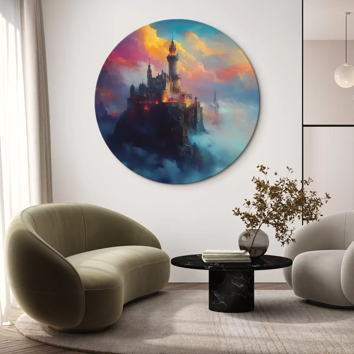Ronde schilderijen Kasteel op een rots in de wolken r42501
