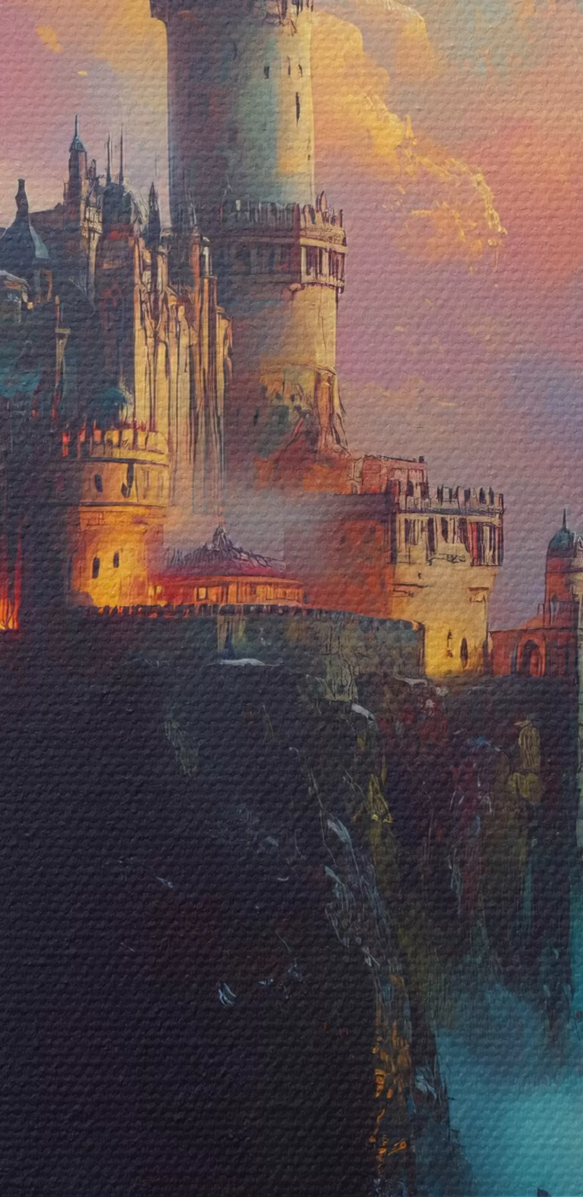 Ronde schilderijen Kasteel op een rots in de wolken Nr r42501