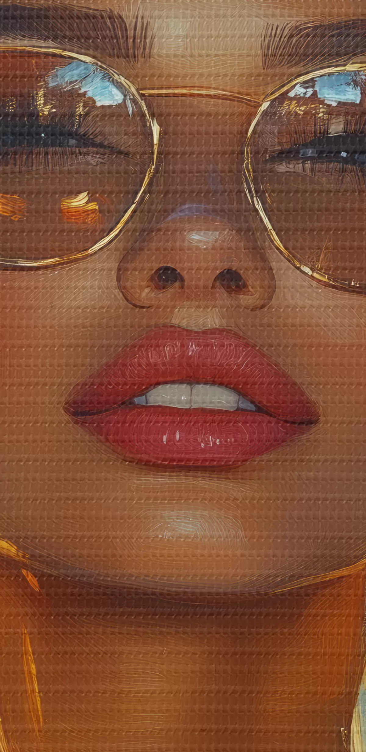 Ronde schilderijen Portret van een meisje met zonnebril Nr r42503