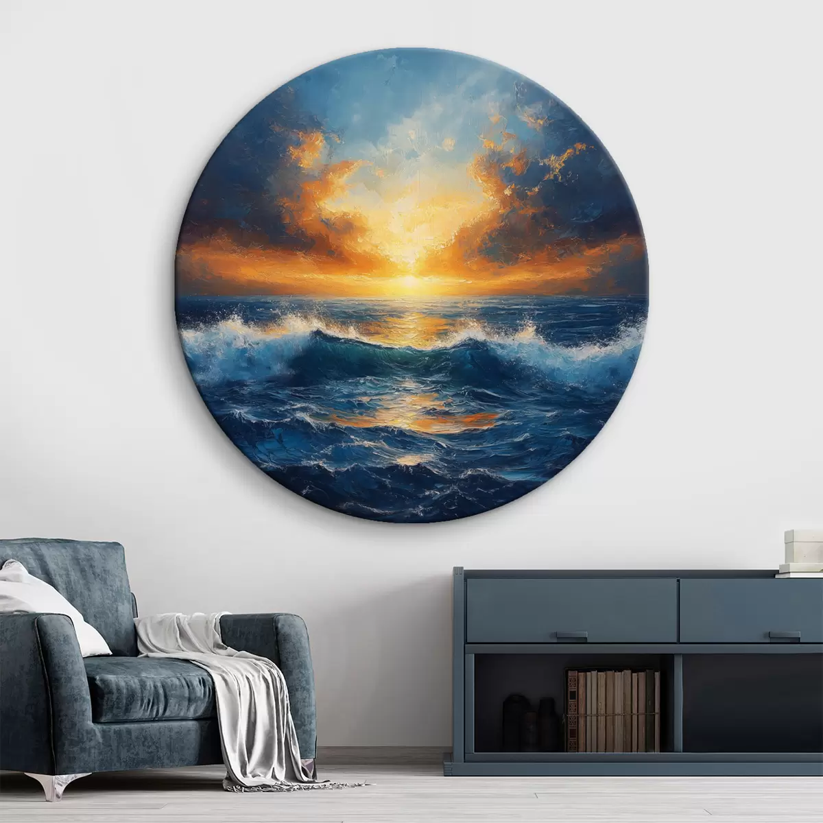 Ronde schilderijen Zee bij zonsopgang Nr r42510