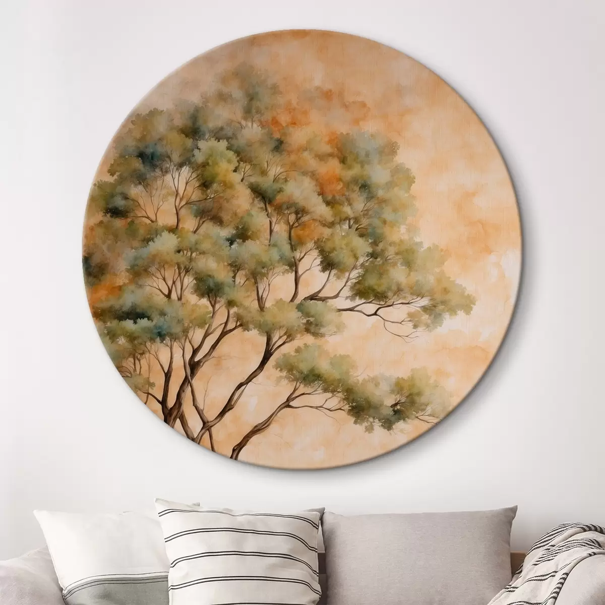 Ronde schilderijen Boom op oranje en witte achtergrond in aquarel schilderstijl Nr r42514