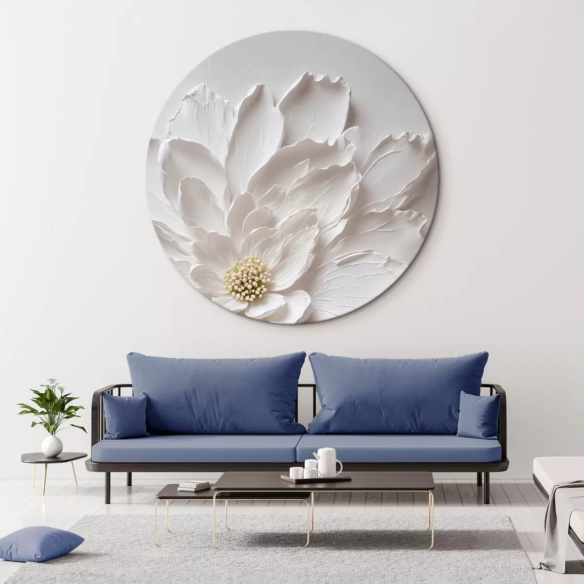 Ronde schilderijen Witte bloem op witte achtergrond Nr r42517