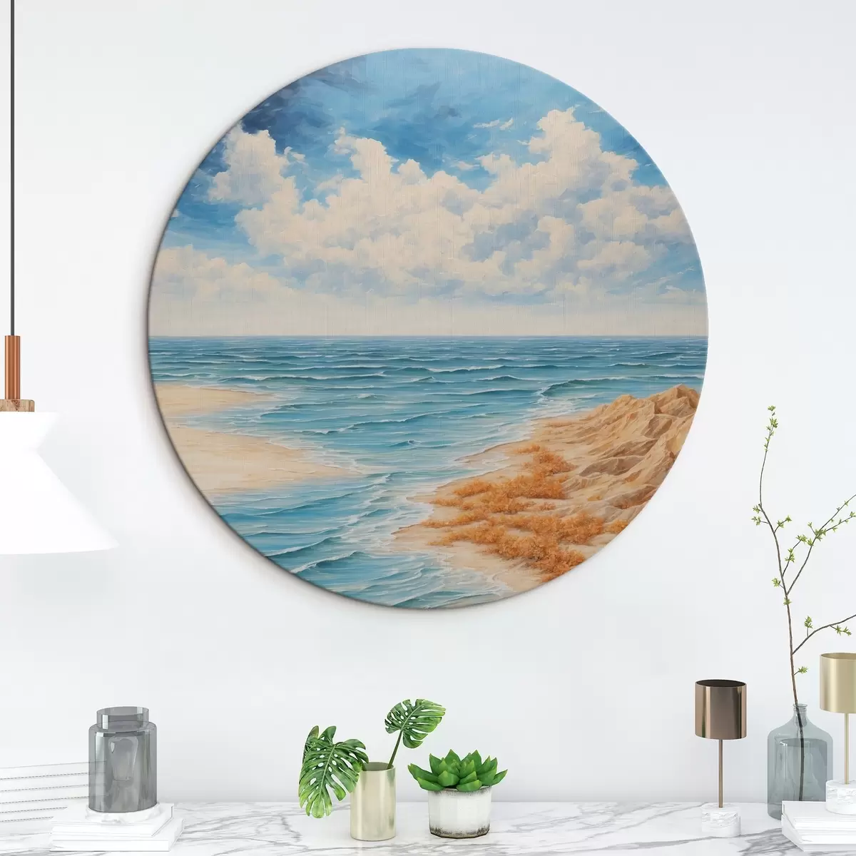 Ronde schilderijen Strand en blauwe lucht in acrylschilderstijl r42518