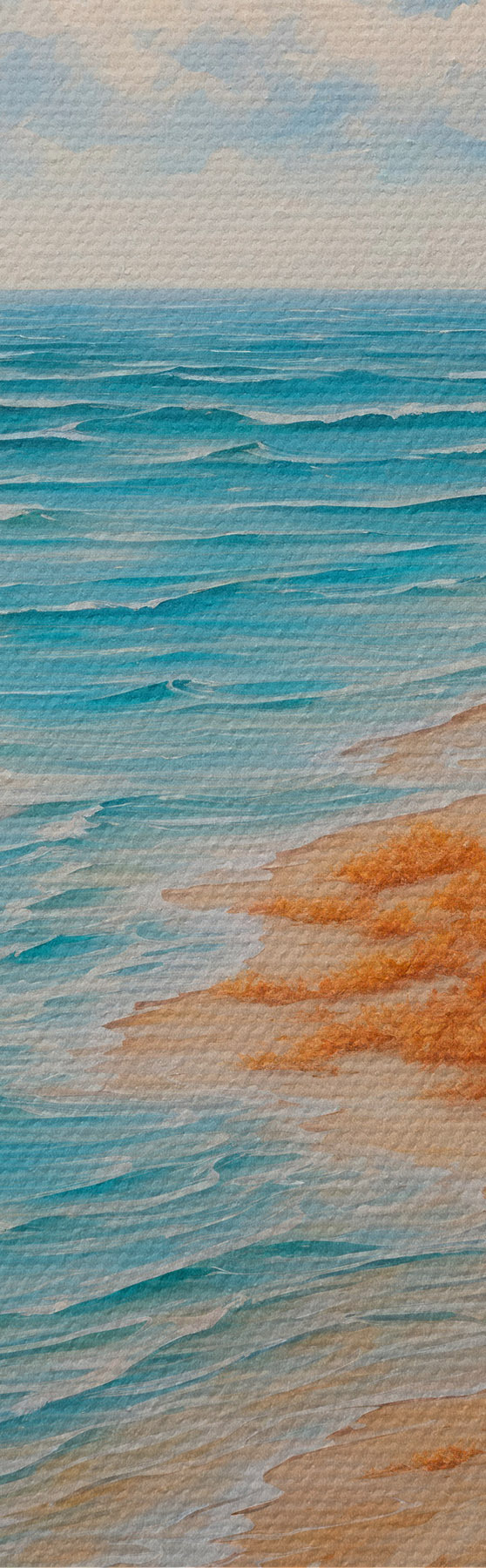 Ronde schilderijen Strand en blauwe lucht in acrylschilderstijl Nr r42518