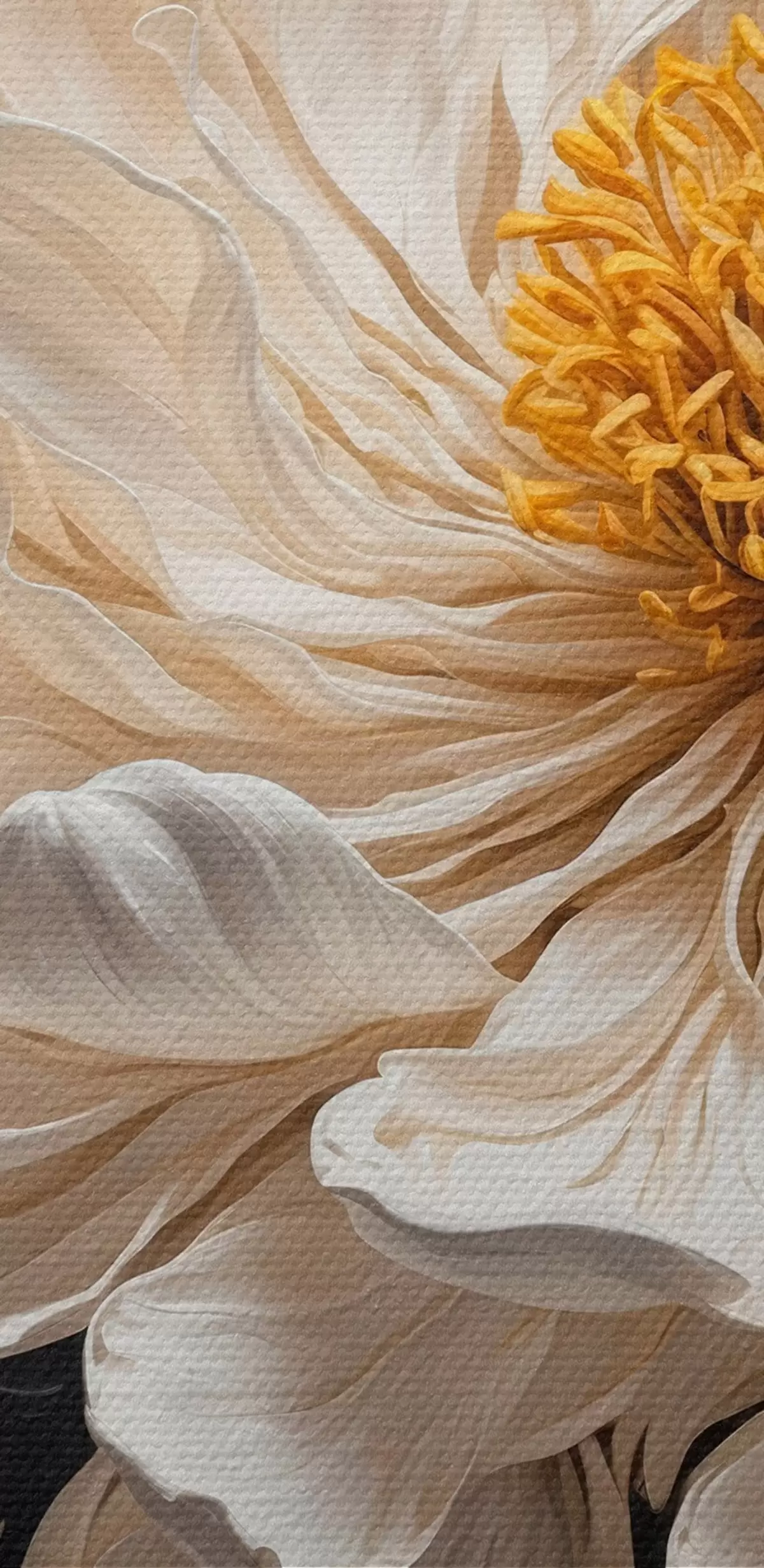Ronde schilderijen Witte bloem op zwart-beige achtergrond Nr r42522