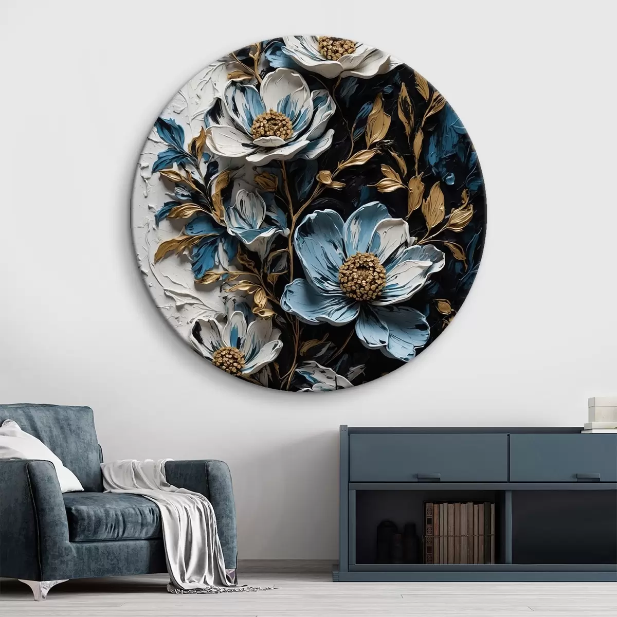 Ronde schilderijen Bloemen en stengels op zwart-witte achtergrond in olieverfschilderijstijl Nr r42532