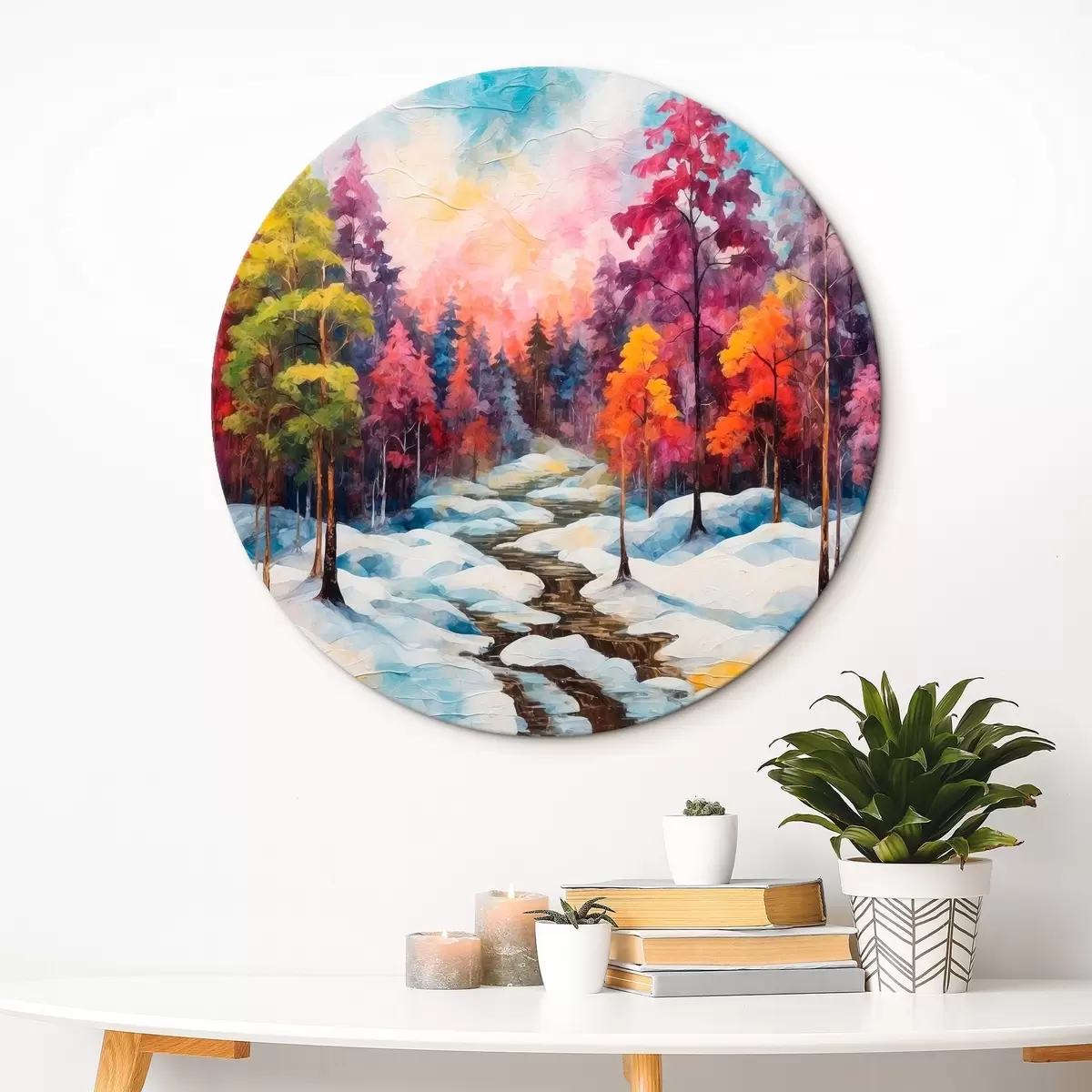 Ronde schilderijen Bos in winterstijl schilderen in aquarel Nr r42549