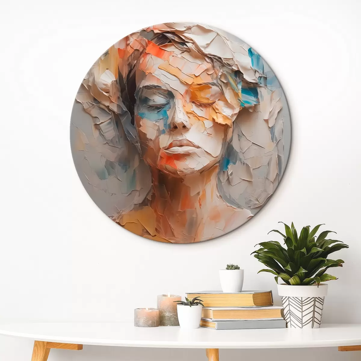 Ronde schilderijen Abstract portret van een meisje imitatie van penseelstreken Nr r42587
