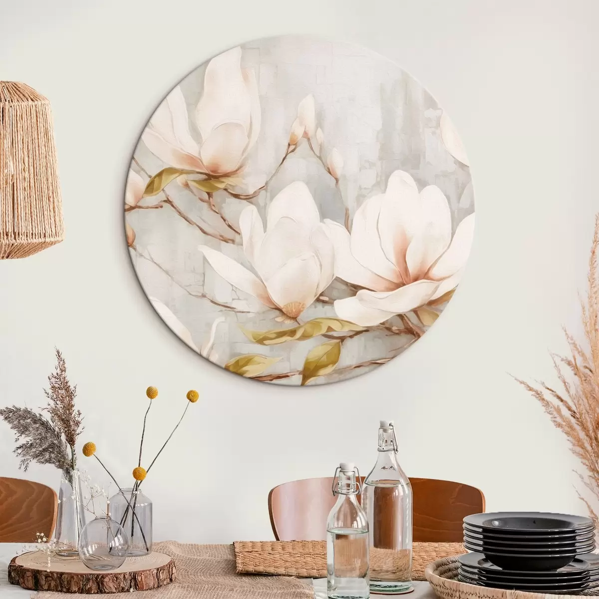 Ronde schilderijen Tak met magnolia bloemen trend Nr r42632