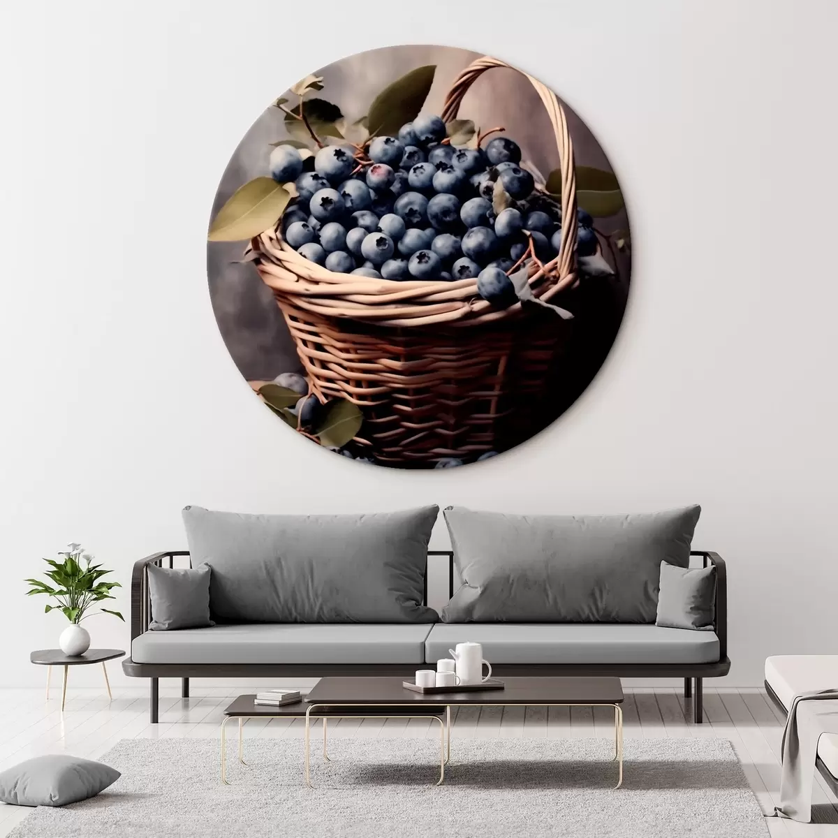 Ronde schilderijen Mandje met bosbessen Nr r42645