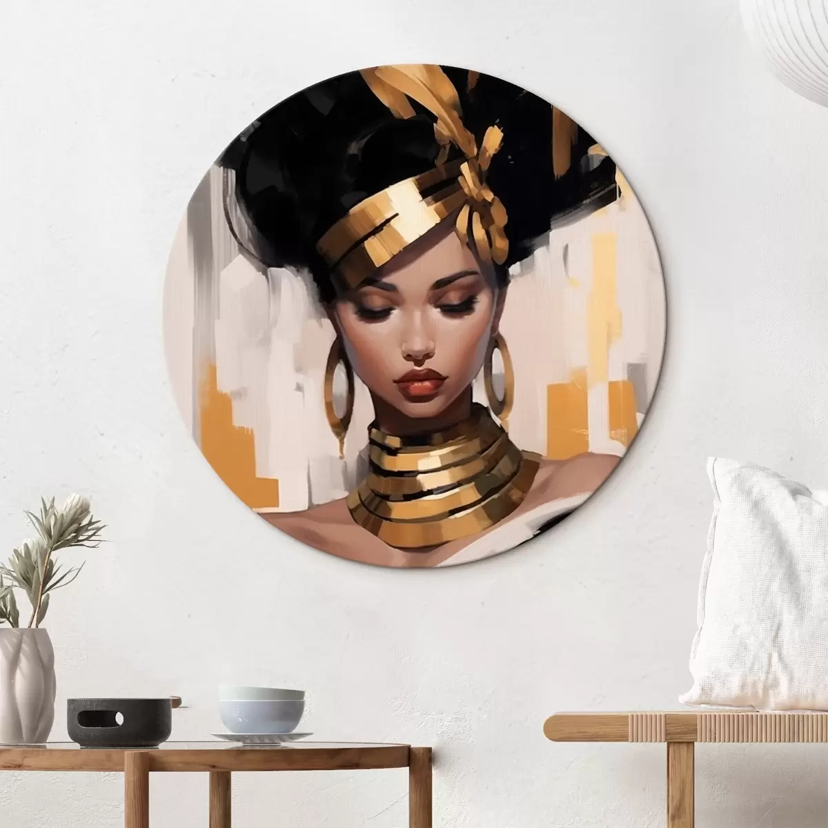 Ronde schilderijen Portret van een vrouw met moderne etnische stijl r42648