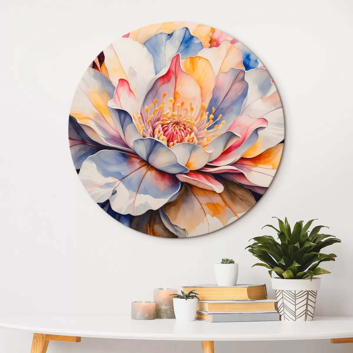 Ronde schilderijen Veelkleurige bloem met aquarel imitatie r42706