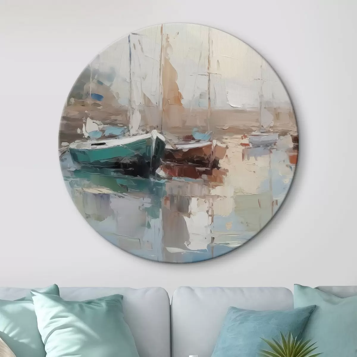 Ronde schilderijen Boot imitatie van abstract schilderij Nr r42743