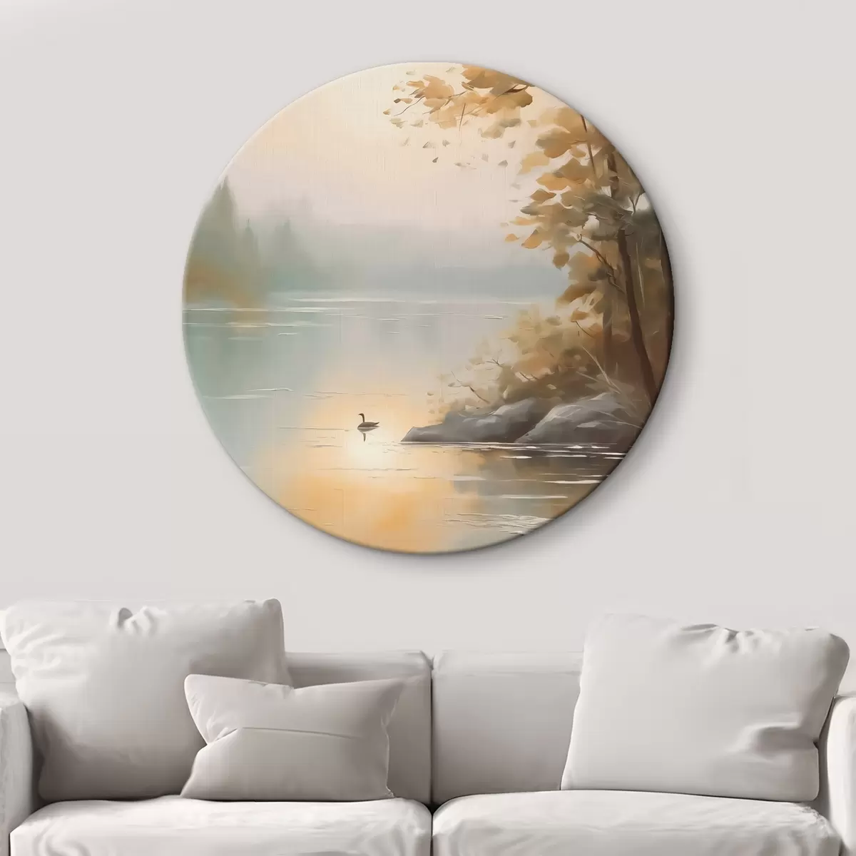 Ronde schilderijen Boom bij het vijverlandschap Nr r42757