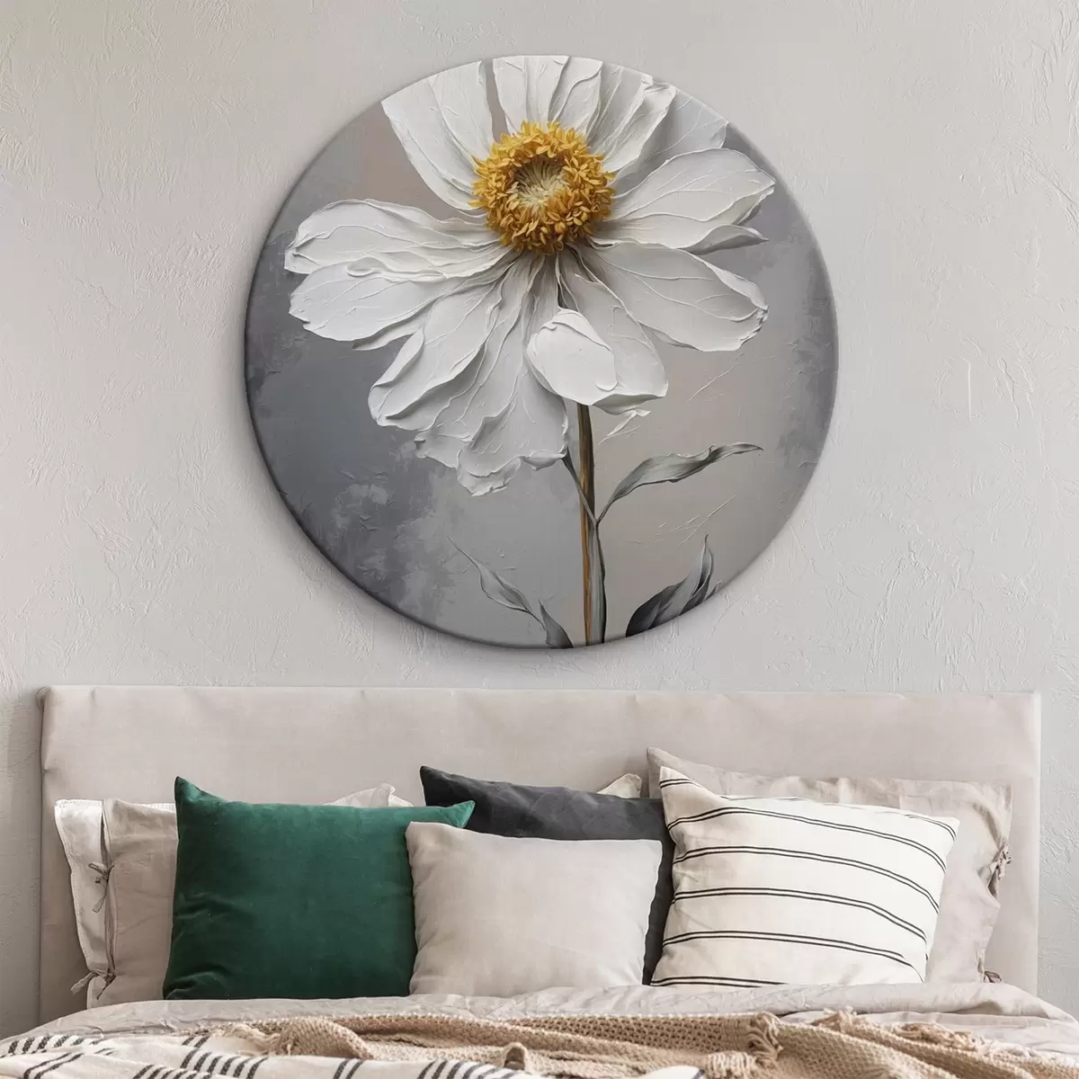 Ronde schilderijen Kamille op witte achtergrond in olieverfschilderijstijl Nr r42758
