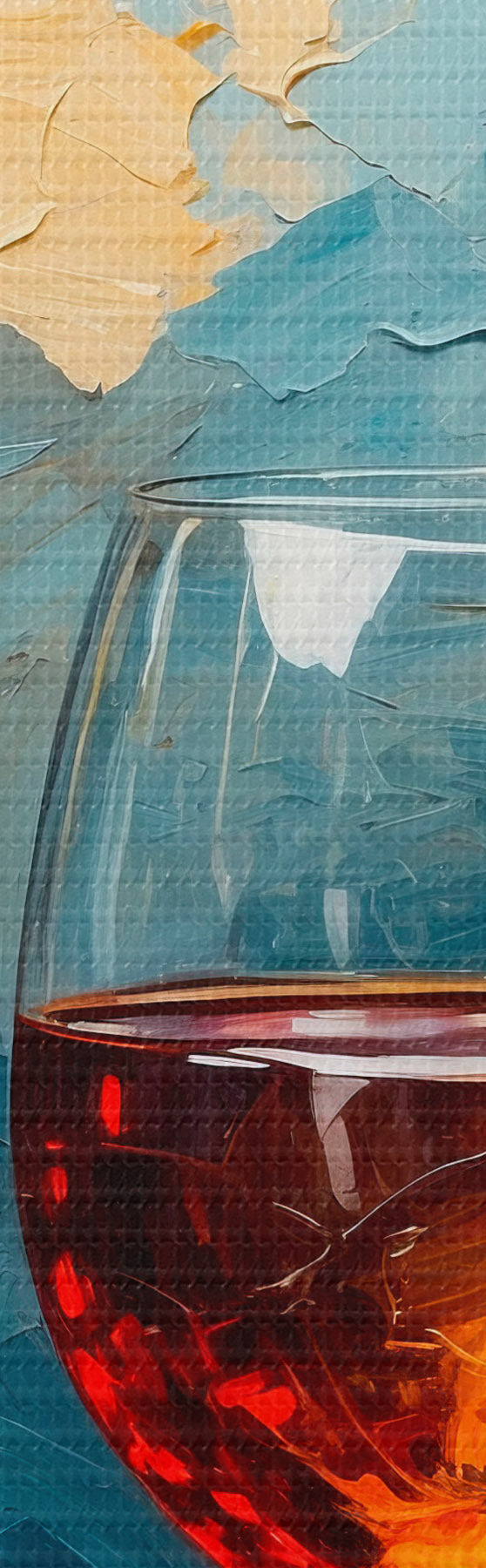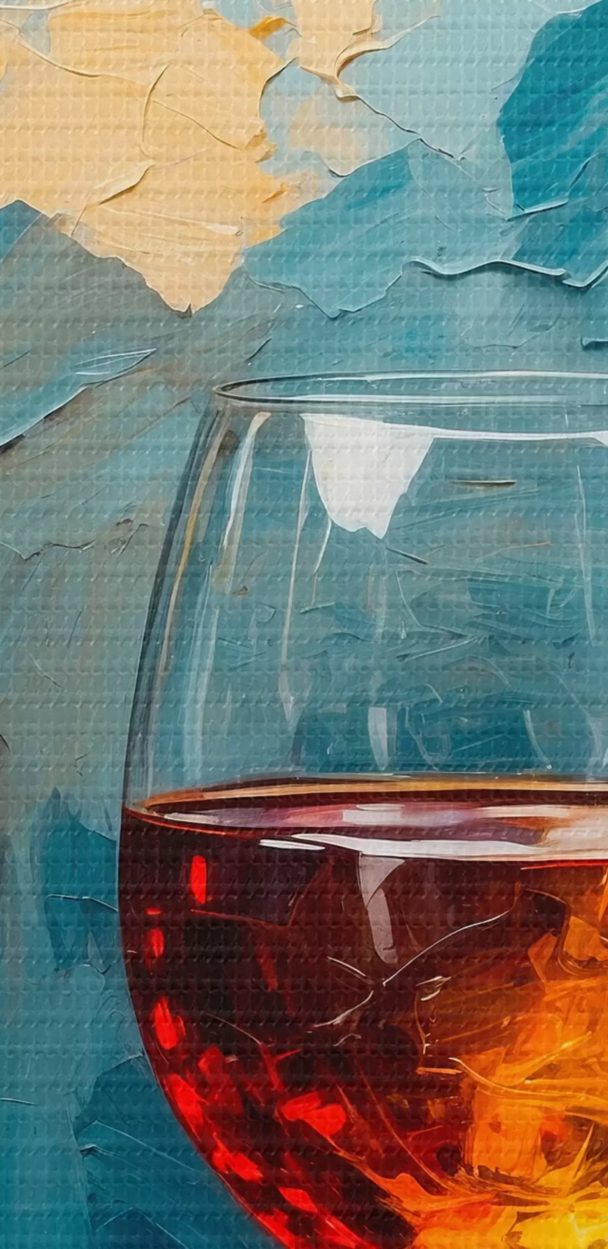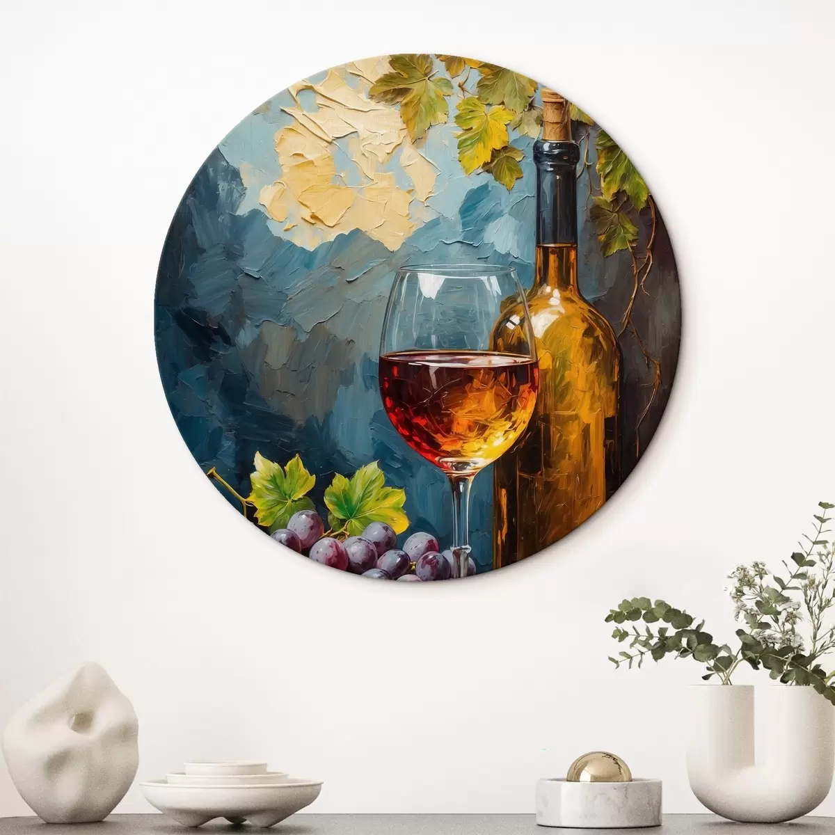 Ronde schilderijen Druiven, glas en wijnfles op abstracte acrylachtergrond Nr r42772