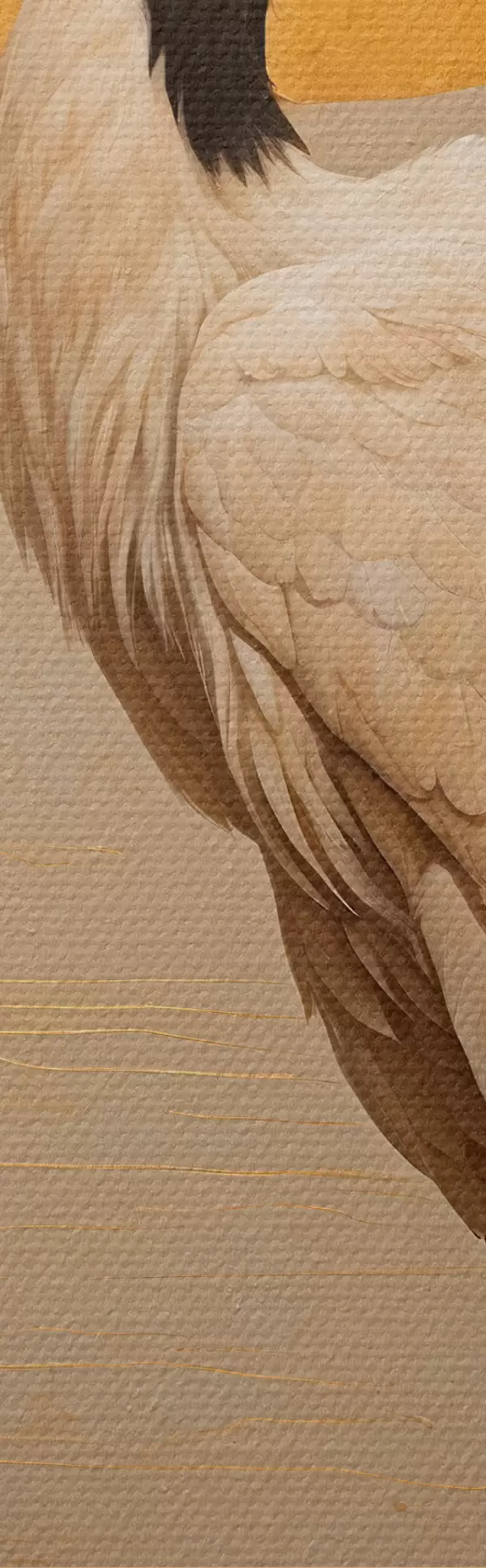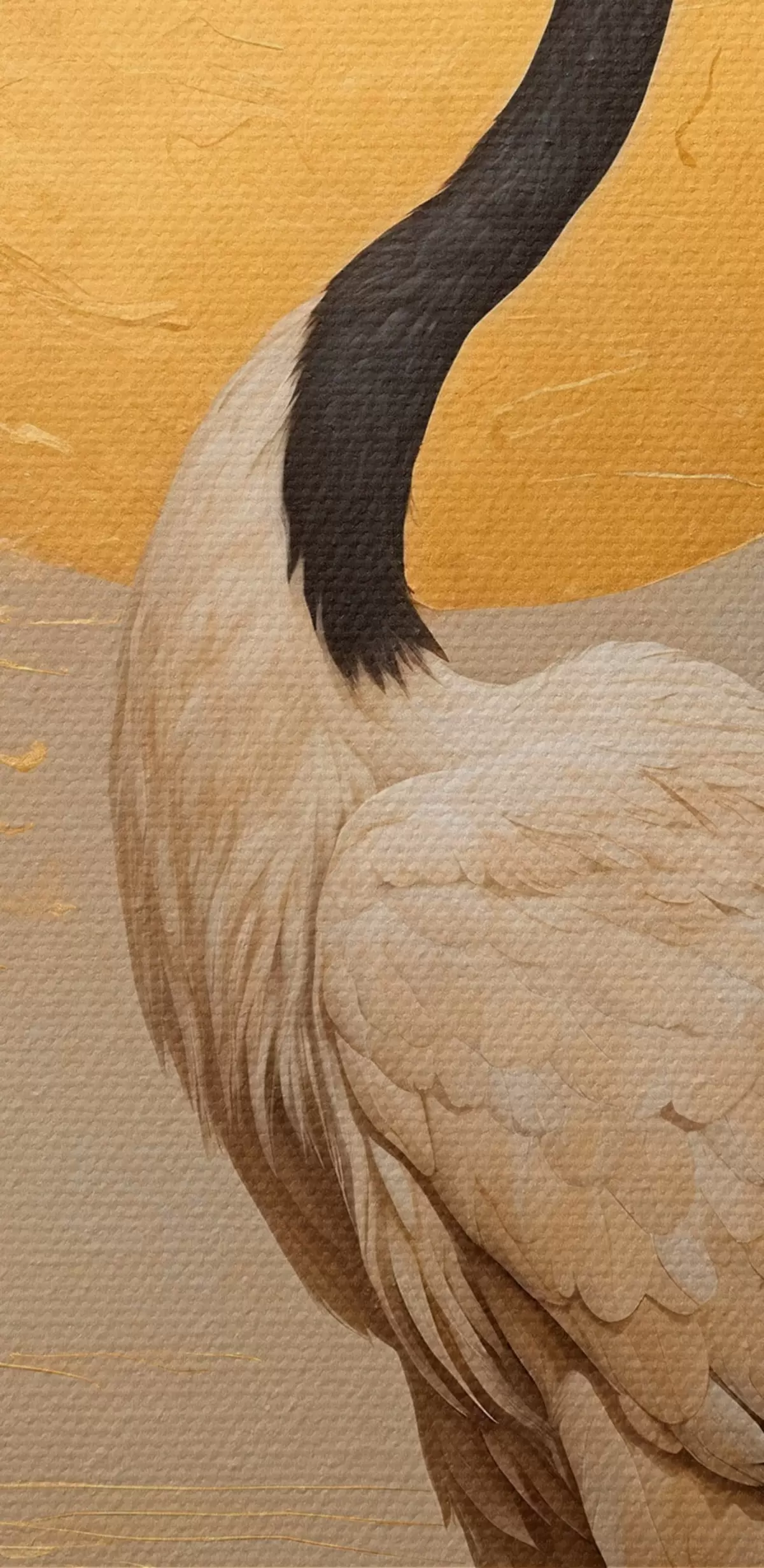 Ronde schilderijen Kraanvogel tegen de achtergrond van de zon in acrylverfstijl r42773