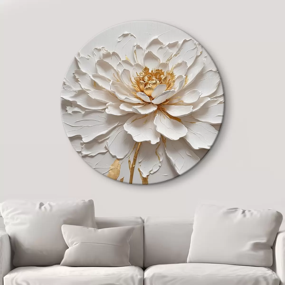 Ronde schilderijen Witte bloem in olieverfschilderijstijl Nr r42777