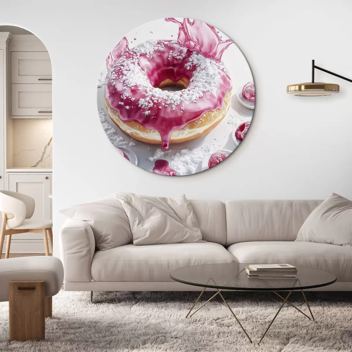 Ronde schilderijen Realistische donut met bessen en roze glazuur Nr r42790