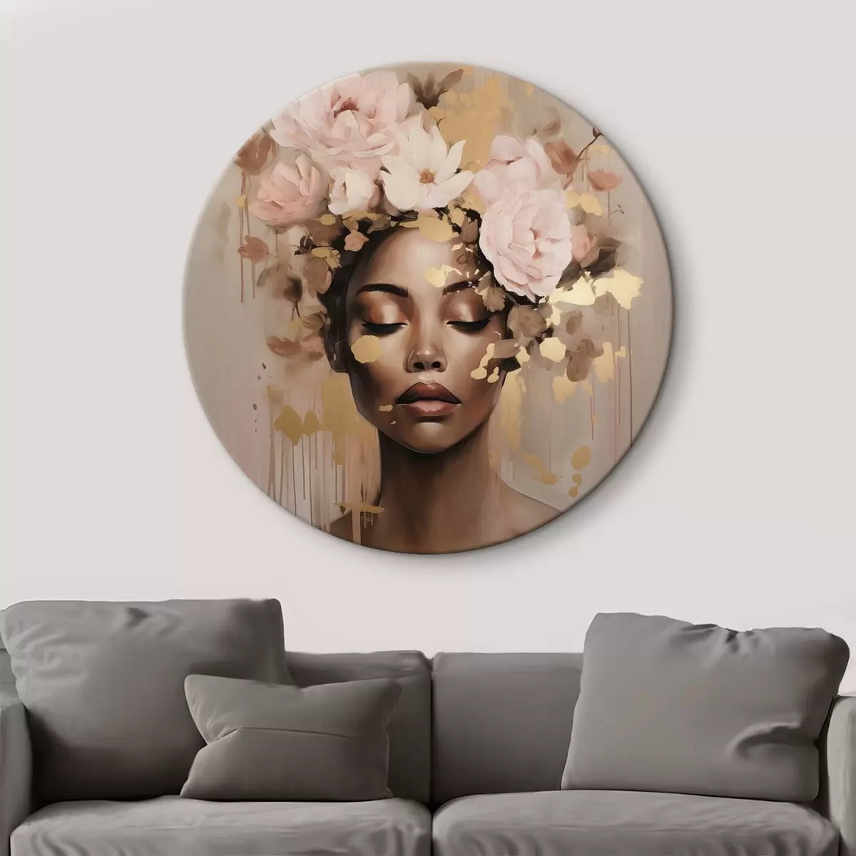 Ronde schilderijen Meisje met bloemenkroon r42814