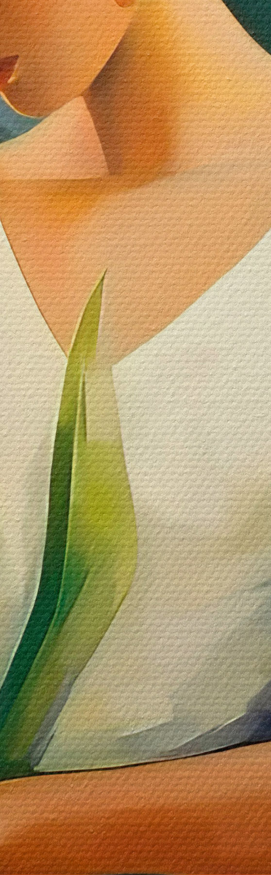 Het schilderij kan direct na ontvangst worden opgehangen. Het schilderij wordt opgespannen op een 2 cm breed houten spieraam.