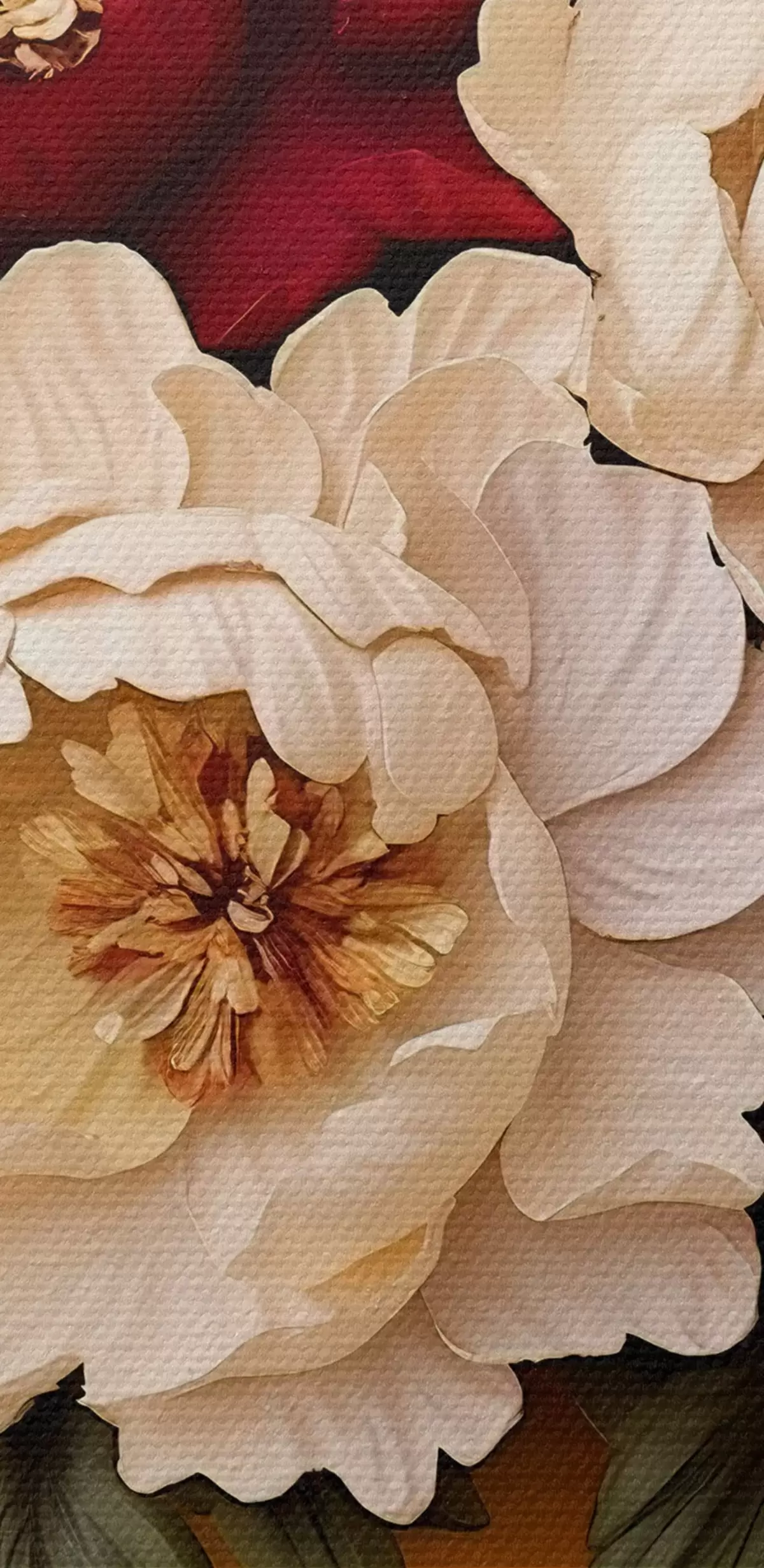 Ronde schilderijen Rode en witte pioenrozen in een vaas Nr r42820