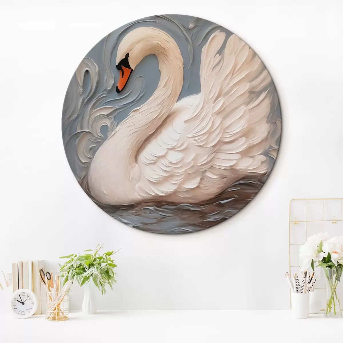 Ronde schilderijen Zwaan imitatieschilderij r42829