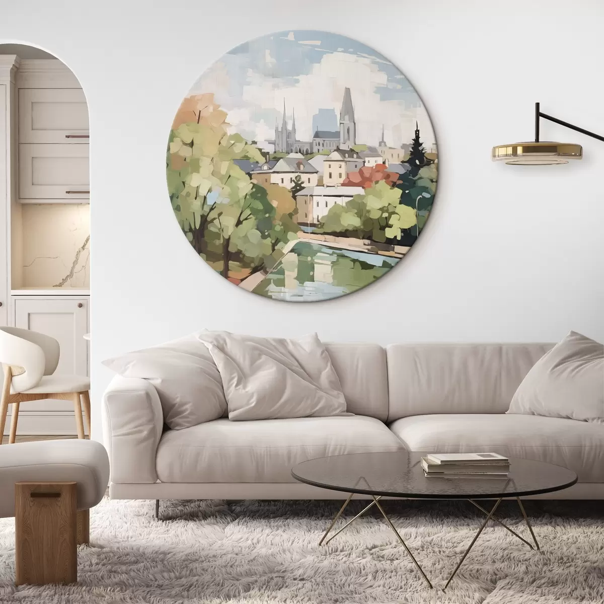 Ronde schilderijen Abstract stadsgezicht imitatieschilderij r42834