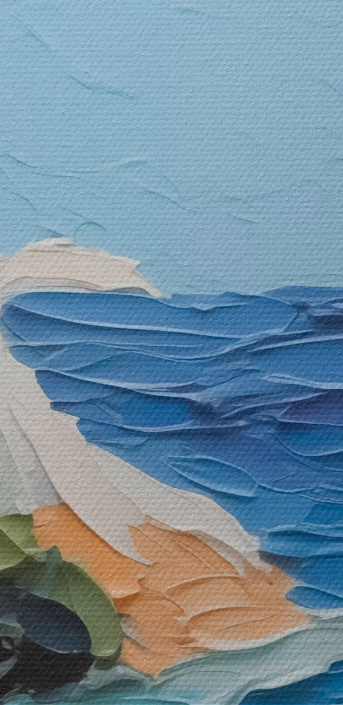 Het schilderij kan direct na ontvangst worden opgehangen. Het schilderij wordt opgespannen op een 2 cm breed houten spieraam.