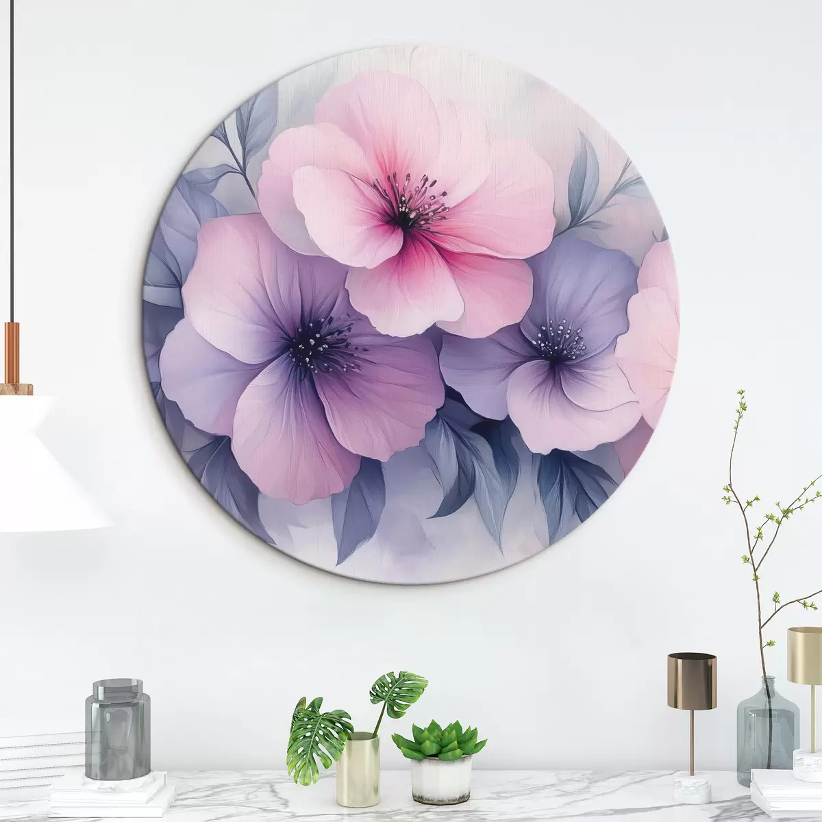 Ronde schilderijen Delicate roze en paarse bloemen Nr r42851