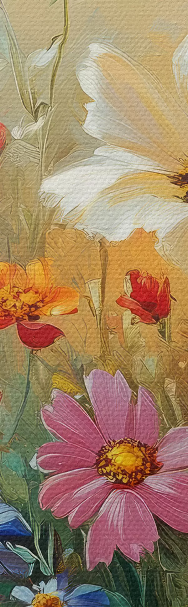 Er zijn drie soorten materiaal te bestellen: Economic Canvas - een dicht en duurzaam materiaal voor digitaal printen, identiek aan schildersdoek, waterdicht oppervlak, realistische weergave van details, materiaal met gemiddelde korrel. Premium Canvas - de textuur lijkt op die van schildersdoek (verweven kleine draden). Zachte, gedetailleerde reproductie van de afbeelding op een mat oppervlak. Eco-Premium - hoogwaardige 100% katoenen stof. Dankzij de natuurlijke katoenvezels is het materiaal duurzaam en slijtvast. Uitstekende kleurweergave en detail.
