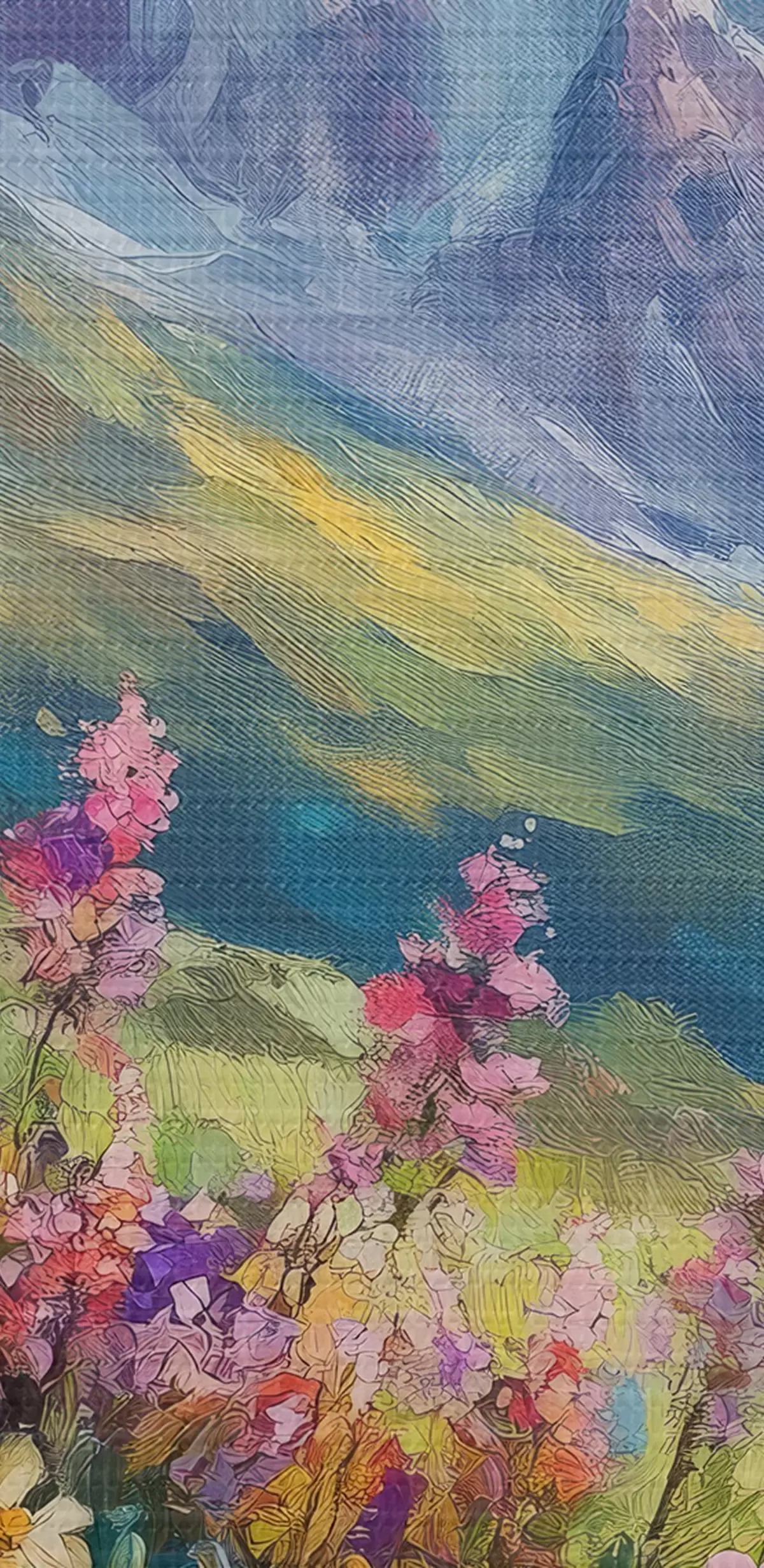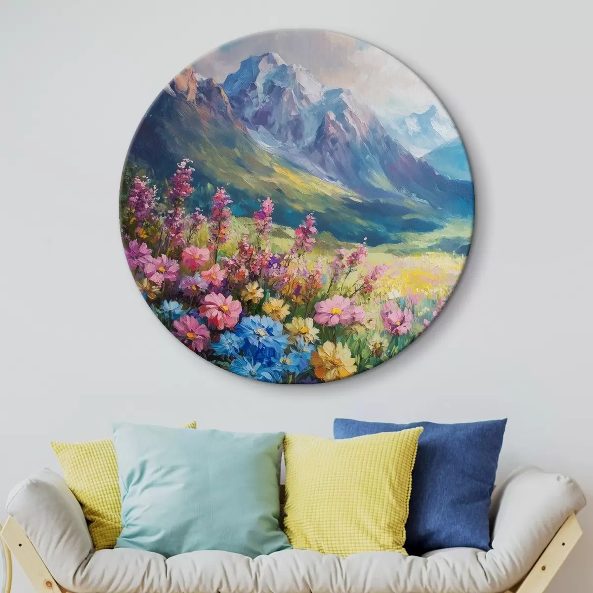Ronde schilderijen Bloeiende weide in de bergen Nr r42855