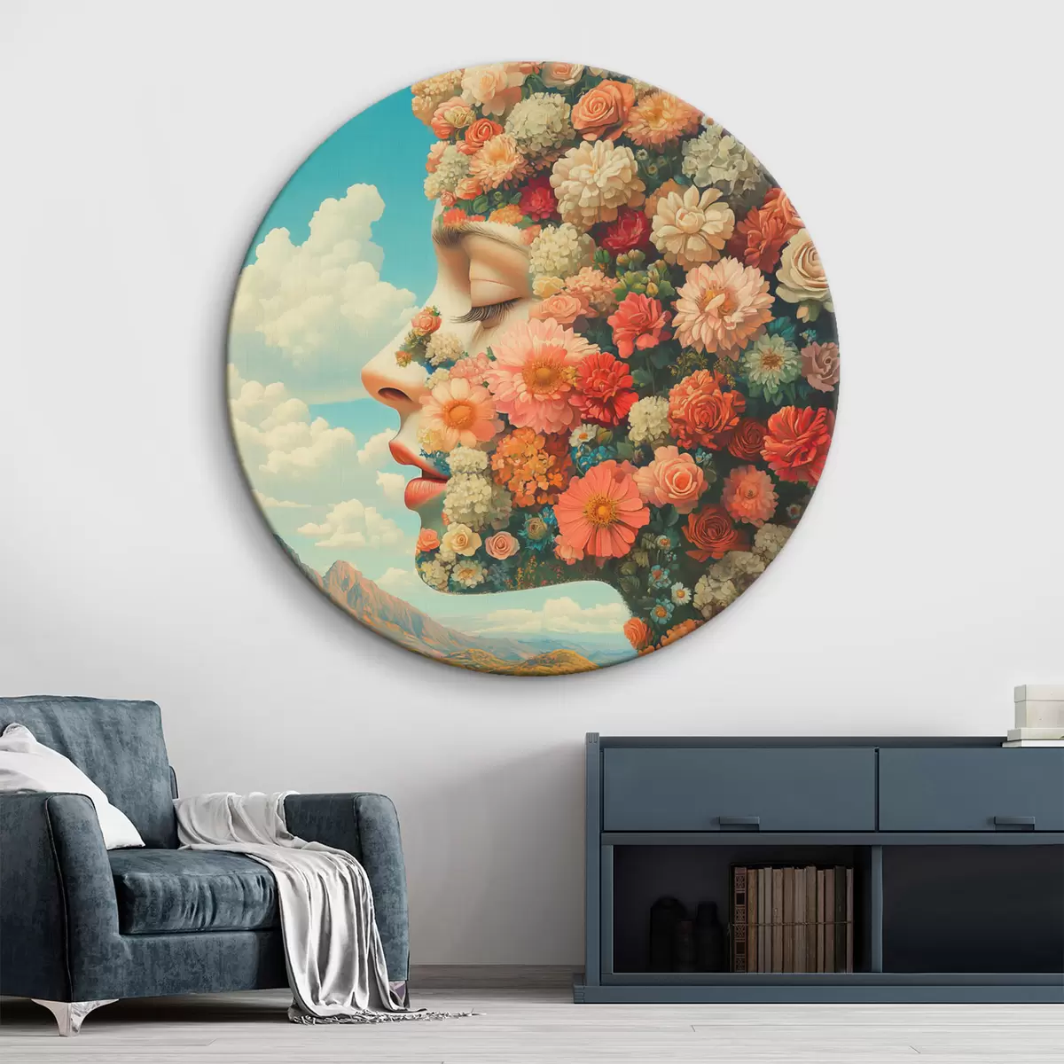 Ronde schilderijen Gezicht in profiel in bloemen r42861