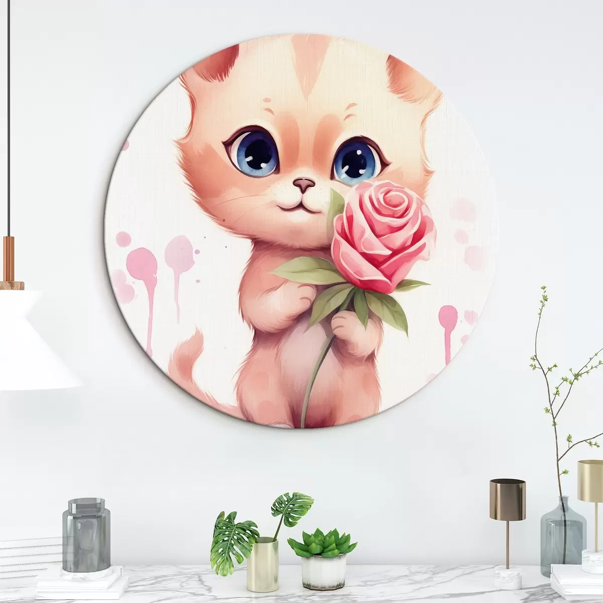 Ronde schilderijen Schattige kat met een roos Nr r42866
