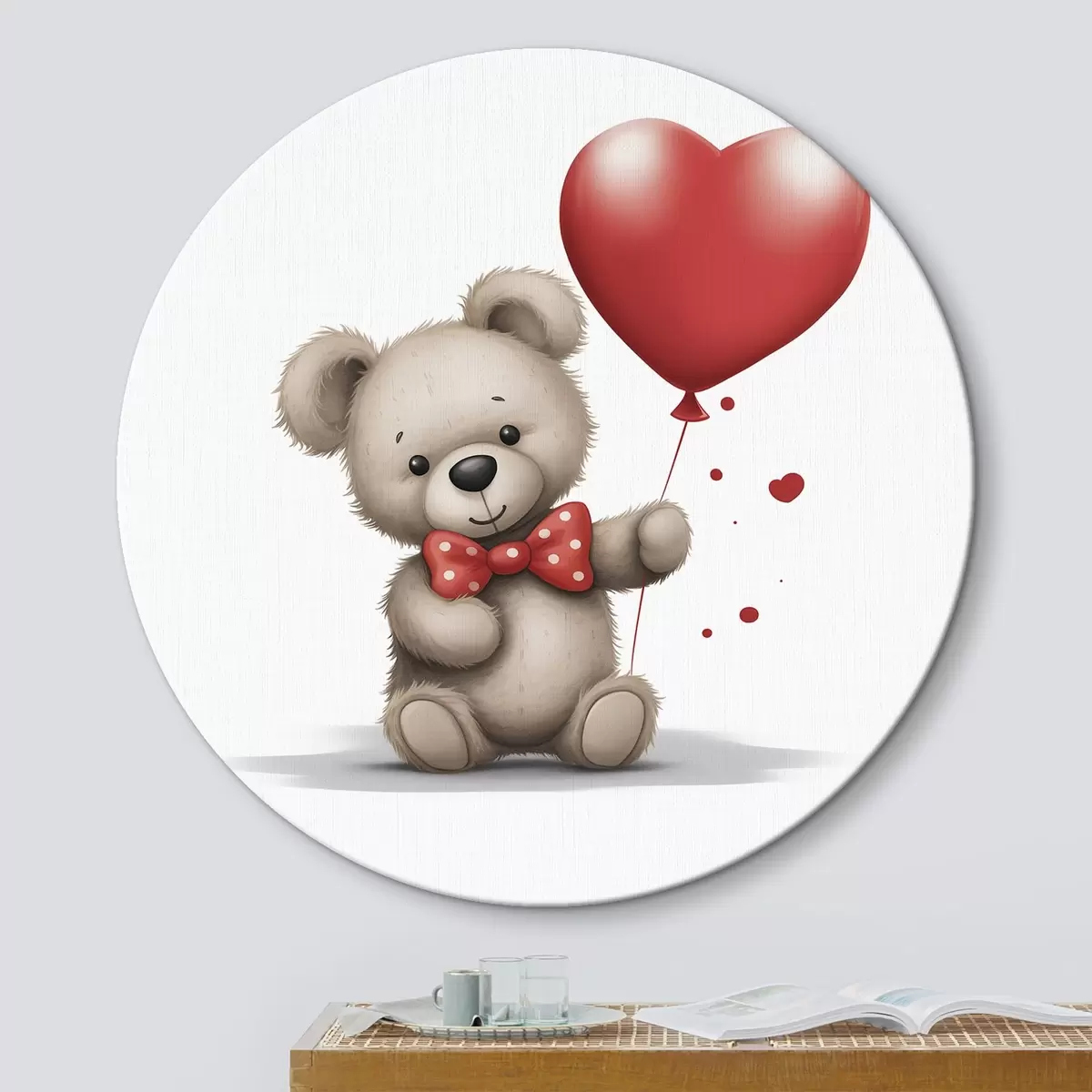 Ronde schilderijen Schattige beer met een rode hartballon Nr r42879