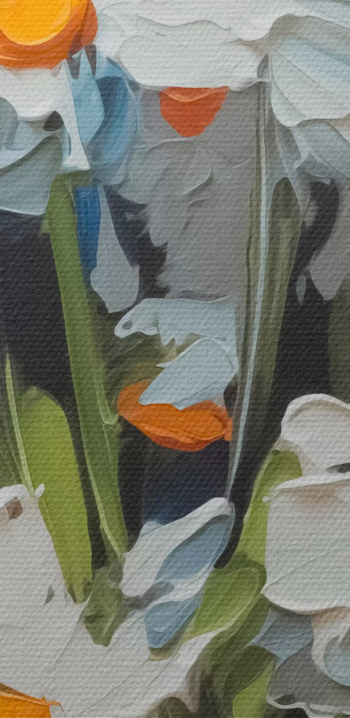 Ronde schilderijen Abstracte madeliefjes imitatie van penseelstreken r42902