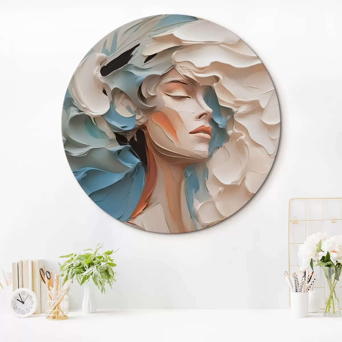Ronde schilderijen Portret van een meisje abstracte imitatie van schilderij r42904