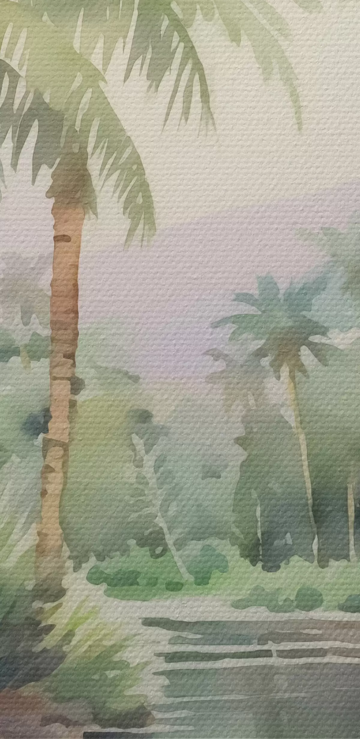 Ronde schilderijen Tropisch landschap imitatie aquarel Nr r42912