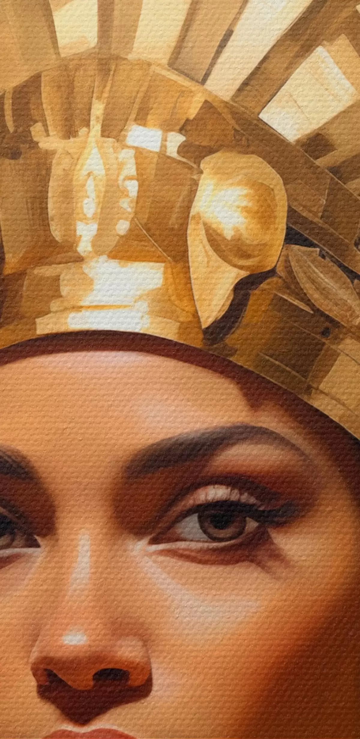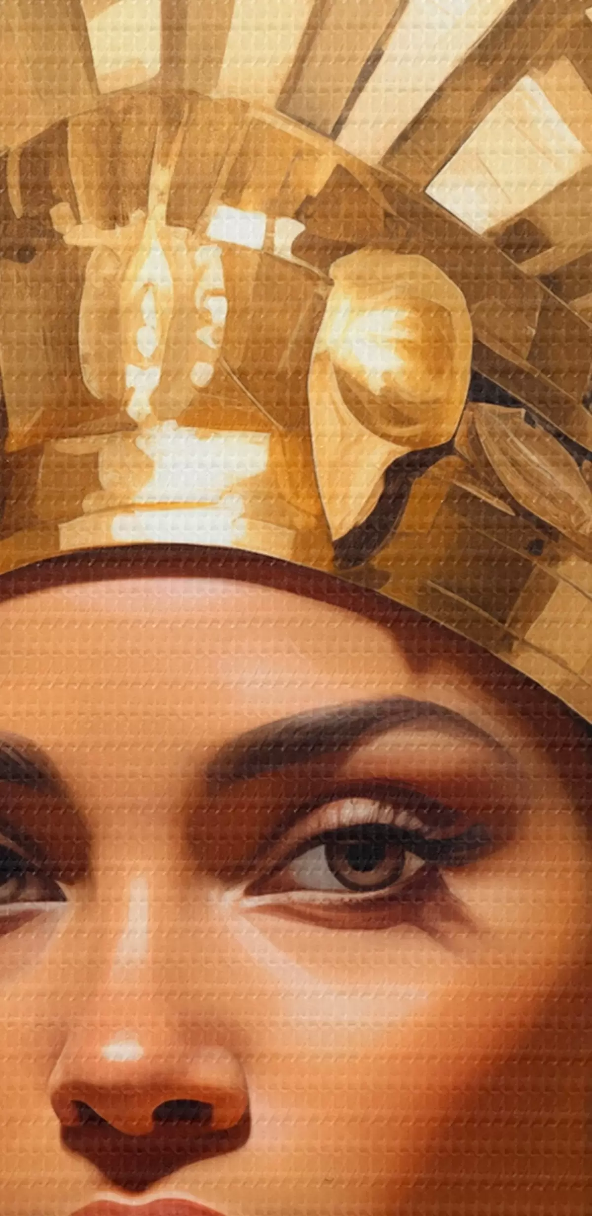 Ronde schilderijen Portret van een vrouw met een majestueus hoofddeksel en traditionele ornamenten Nr r42931