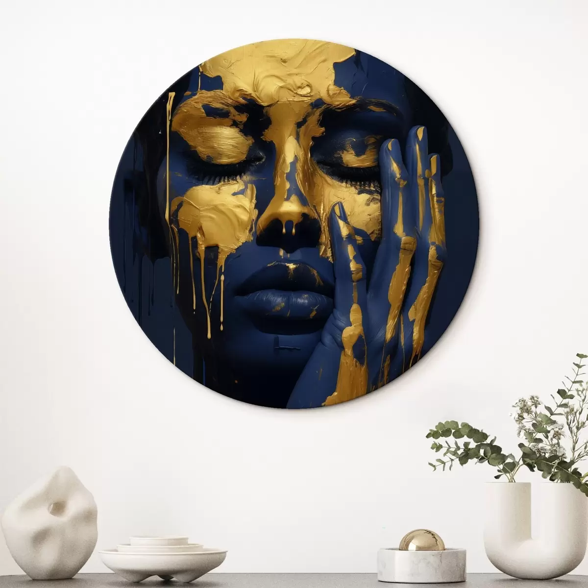 Ronde schilderijen Abstract portret van een vrouw met diepe donkere en warme tinten, Nr r42933