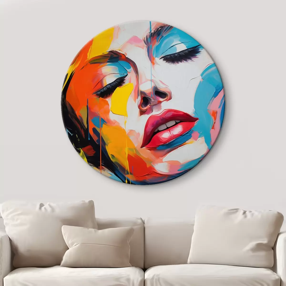Ronde schilderijen Abstract portret van een vrouw in expressieve kleuren Nr r42935