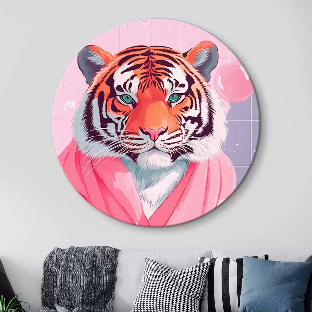 Ronde schilderijen Tijger in een roze handdoek Nr r42942