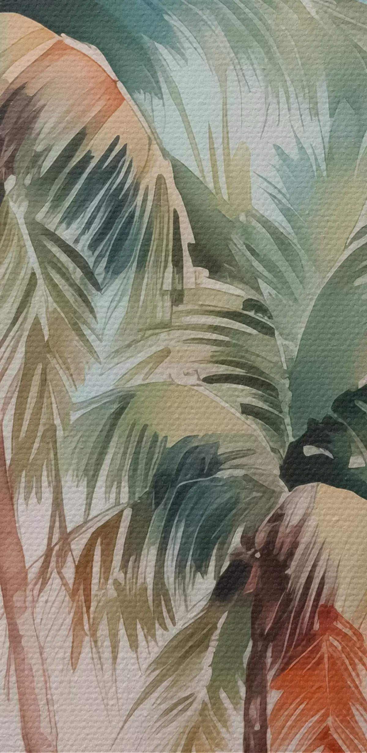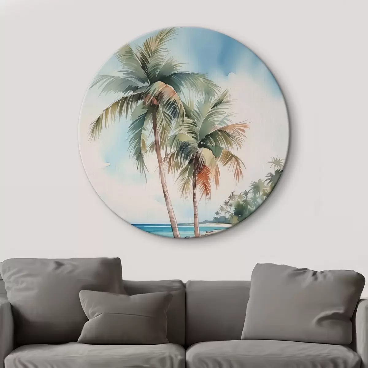 Ronde schilderijen Palmbomen aan zee imitatie van aquarel Nr r42958