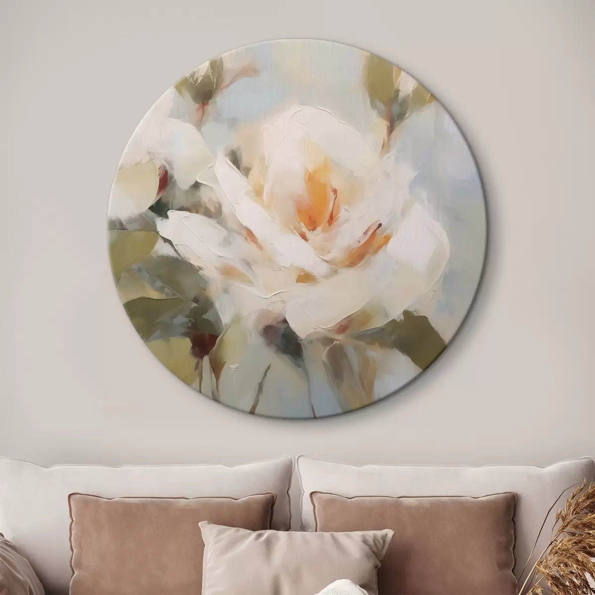 Ronde schilderijen Witte bloemen abstract Nr r42963